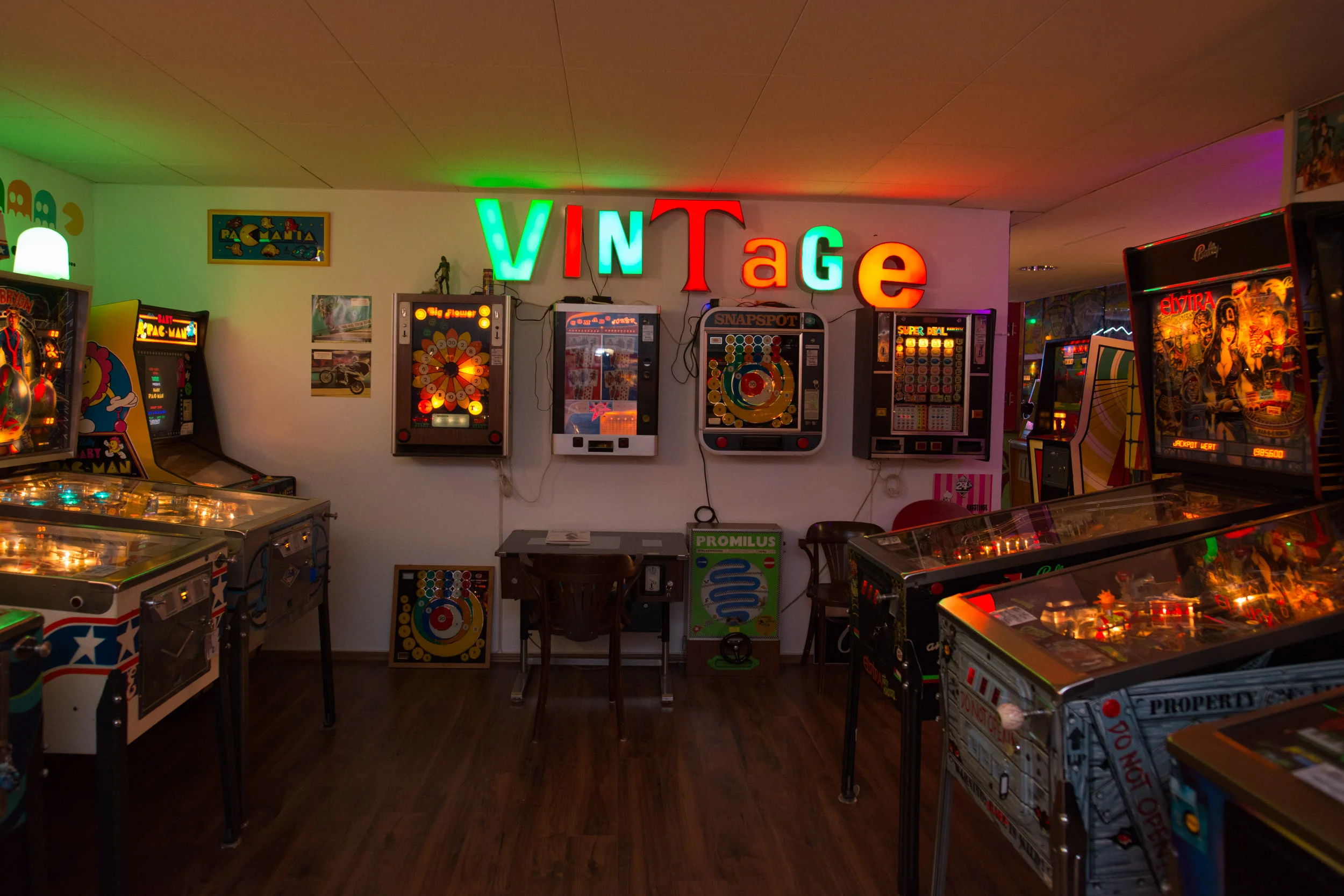 Eine Zeitreise in die 60er und 70er Jahre; ultraseltene Arcades wie S.A.M.I. oder Sea Wolf und mechanische Flipper warten hier auf Kundschaft